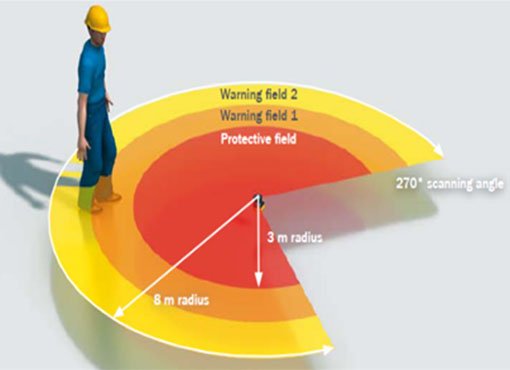 安全避障區(qū)域可以跟隨AGV行駛方向及動作進行切換。能在前進、轉彎、橫移等方向上根據車速動態(tài)調整避障范圍及區(qū)域。